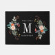 Diese benutzerdefinierte Türmatte verfügt über einen botanischen Blume-Spray auf beiden Seiten eines Monogramm-Initials. Passen Sie den Begrüßungstext und den Nachnamen an.
