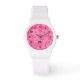 Personalisieren Sie diese fett rosa Blume gemusterte Uhr für das Mädchen, die ihre Farbtöne von Rosa Liebe. Editieren Sie einfach den formatierten Text für das Monogramm im einfachen Texteditor Zazzle. Ihre Auswahl an Uhrenstilen und Farben.