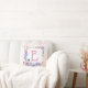 Dekorieren Sie Ihr Sofa mit diesem niedlichen Monogramm aus rosa Marmor-Rose. Personalisieren Sie es mit Ihrem ersten. Es hat einen rosa Buchstaben in einem weißen Quadrat mit einer grauen Kontur. Ein hellrosa Rosenbukett hebt die untere und obere rechte Ecke hervor. Es ist Set vor einem rosa Marmorboden.