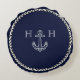 Monogramm des Nautic Navy Blue Anchor Coastor Rundes Kissen