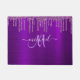 Girly Lila Dripping Glitzer Brush Metal Monogram Doormat, Diese Türmatte hat eine große Lavendel-Skript-Monogramm und Ihr Name in Weiß, um auf einem schönen lila Glitzer brushed metallischen Hintergrund mit einer Grenze von Imitaten tropfen Glitzer personalisieren. Passen Sie die Türmatte mit dem Namen Ihrer Wahl an, damit sich jemand ganz besonders fühlt. Es macht ein lustiges Geschenk für Geburtstage oder Weihnachten... Es gibt keine Mindestbestellmenge. Entworfen nur für Sie von designtee1!
