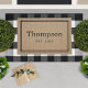Dieses mit Monogramm Doormat ist einfach und elegant, mit dem Nachnamen Ihrer Familie in ansehnlichen Serifenschrift mit dem unten festgelegten Jahr und einem stilvollen gestreiften Rahmen-Design. Ein wunderschönes Geschenk für Neuvermählte oder neue Hausbesitzer. Enthält eine dunkelbräunliche Hintergrundebene mit rustikalem Texturteil. Neutrale und schwarze Designfarben können so modifiziert werden, dass sie sich mit Ihrer Wohngestaltung abstimmen.