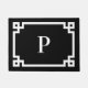 Dekorativer weißer griechischer Key geometrischer rechteckiger Rahmen auf einer schwarzen 18" x 24" Türmatte mit einem modernen Serifenmonogramm. Passen Sie dieses Design an, indem Sie die Farbe Weiß oder Schwarz mit Ihrer Lieblingsfarbe bearbeiten. Ändern Sie bei Bedarf den Stil, die Größe oder die Farbe des Schriftartes. Entdecken Sie diesen trendigen Schatten mit Ihrer minimalistischen Wohngestaltung. Wir haben auch eine griechische Schlüsselgrenze für die große Türmatte Größe. Senden Sie eine Anfrage, wenn Sie ein anderes Geschenk mit einem einzigartigen Druckbereich benötigen.