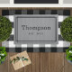 Dieses mit Monogramm Doormat ist einfach und elegant, mit dem Nachnamen Ihrer Familie in ansehnlichen Serifenschrift mit dem unten festgelegten Jahr und einem stilvollen gestreiften Rahmen-Design. Ein wunderschönes Geschenk für Neuvermählte oder neue Hausbesitzer. Enthält eine kohlegraue Grasdeckenschicht mit rustikaler Struktur. Neutrale mittlere Grau- und Schwarz-Designfarben können so modifiziert werden, dass sie sich mit Ihrer Wohngestaltung abstimmen.