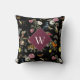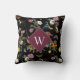 Monogramm für Vintage dunkle botanische Tiere Kissen