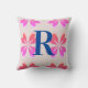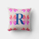 Monogramm Hot Pink Bright Orange Retro Blume Kissen