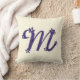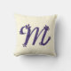 Monogramm Letter M Lila mit Blumendetails Creme Kissen