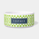 Niedliche, maßgeschneiderte Katzen- oder Hundefutterschale mit einem limiengrünen Kaiserschnitt und Rechteck-Platzhalter für den Namen Ihres geliebten Haustieres.