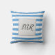 Monogramm mit weißem und hellblauen Streifen Kissen
