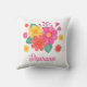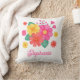 Passen Sie dieses hübsche Kissen mit Ihrem Namen an. Es zeichnet sich durch ein originelles, modernes Blumendesign mit rosa, orangefarbenen und gelben Blumen aus.