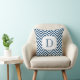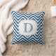 Navy und White Zickzack Pattern Monogram Pillow. Personalisieren Sie mit Ihrem eigenen Initial.