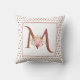 Elegantes Terracotta Monogramm, Rosenbouquet und Polka Punkte Blumenkissen. Dieses Blumendesign zeigt einen Strauß rosa Rosen und verlasst auf Ihrem Monogramm, das in Terrakotta-Farbe ist. Um das Monogramm herum gibt es zwei Ränder und Polka Punkte. Möglicherweise müssen Sie die Position des Briefes anpassen, wenn Sie ihn und den Bouquet wechseln.