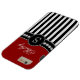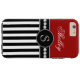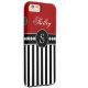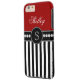 Monogramm-rotes schwarzes Streifen-Namensmuster Case-Mate iPhone Hülle