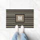 Monogramm rustikal Schwarz-weiß braun gestreifte schicke Vordertür Außentür Türmatte. Klicken Sie auf diese Vorlage personalisieren, um sie mit Ihrer eigenen Monogram Initial schnell und einfach anzupassen. Doormat ist ein rutschfester Gummi, der nicht knacken oder knöpfen kann, der Matte widersteht dem Faden, Schimmeln und Mehltau und kann mit einem Schlauch leicht gereinigt werden. Weltweit schnell verschickt. 30 Tage Geld zurück Garantie. Monogramm Rustikal Schwarz-weiß braun gestreift Chic Doormat. Erstellt durch den ursprünglichen Künstler RjFxx *Alle Rechte vorbehalten. #monogramOutdoorDoormat #ModernDoormat #ZazzleMade