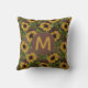 Monogramm rustikales Holzgelb-Sonnenblumen Kissen