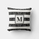 Monogramm Schwarz-weiß gestreiftes Design Kissen