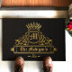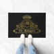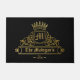 Diese fantastische personalisierte Begrüßungsmatte verfügt über eine Vorlage, die drei Möglichkeiten bietet, sie zu personalisieren und zu einem eigenen zu machen. Die Grafik zeigt einen viktorianischen Rahmen für ein Monogramm, um Ihren personalisierten Goldtext zu unterbringen, und einen matten Jet-Hintergrund