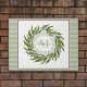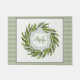 Classic Elegant Style Greenery Wreath personalisiert mit Monogramm und Namen. Weiche grüne Streifen Hintergrund. Perfektes Hochzeitsgeschenk oder Hauswärmeschenk. Sage, Creme, dunkelgrüne Farbpalette.