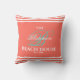 Stilvoll und modern im trendigen Stil lebende Korallen Farbe Familie Strandhaus monogramm Dekor werfen Kissen, türkisfarbene Monogramm Erstmalerei mit weißer fett Typografie und Streifen. Benutzen Sie einfach die Funktion "Personalisieren Sie diese Vorlage", um Ihren Familiennamen, Ihren Anfangsnamen und das festgelegte Datum einzufügen.