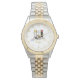 Monogramm oder Initial, oder ein Hauptstadt-Buchstabe "T" in der Art der neoplastischen abstrakten Kunst. Auf dem Buchstaben steht ein lustiger Vogel, ein Gemälde im Stil von De Stijl, modernistisch, zeitgenössisch, avantgardistisch. Ein Vorlagenname "Tiffany" unter dem Bild. Eine elegante Armbanduhr für jeden. Ein vollständig anpassbares Design. Sie können ein Bild, eine Uhr oder ein Zifferblatt und den Vorlagentext ändern. Vergessen Sie nicht, einen anderen Stil oder Geschlecht der Uhr zu wählen. Sie können dieses Design auf Taschenuhren oder Wanduhren übertragen. Ein gutes, lustiges und einzigartiges persönliches Geschenk für jeden. Sei kreativ, kaufe einen, habe Spaß und sei glücklich.