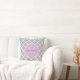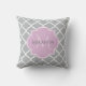 Ein gemustertes Viereck-Kissen mit einem geschmolzenen Abzeichen in einem pinkfarbigen Lavendel, das Sie mit Ihrem Namen personalisieren können und dem Sie den mit Monogramm Einstieg geben. Dies ist Teil der Harbour Mist Gray und Lavender Pink Spring Collection.