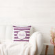 Ein modernes, lila-weiße Streifen quadratische Kissen werfen. Personalisieren Sie dieses schlanke Muster, indem Sie Ihren Namen und den mit Monogramm Anfangsbuchstaben hinzufügen. Dieses elegante Monogramm-Design ist Teil der Magenta Lila Stripes Bedroom Decor Summer Color Collection.