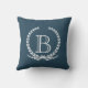 Monogramm-Design mit Lorbeerkraendekoration auf blauem Hintergrund