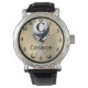 Uhr, Vintage Männeruhr mit schwarzem Lederarmband