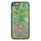 Monogrammm | Farbige tropische Ananas Carved Wood iPhone Hülle