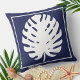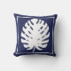 Monstera Leaf Navy Blue and White Coastal Moderne Kissen