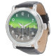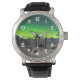 Uhr, Vintage Männeruhr mit schwarzem Lederarmband