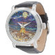 Moonlit Campfire Serenity Stained Glass Wall Armbanduhr
