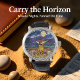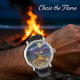 Bring the tranquil magic of a starlit night into your home with this captivating stained glass-style wall clock. The vibrant design vividly portrays a cozy campfire crackling on a peaceful beach, casting a warm glow against the dark, moonlit ocean. Majestic mountains rise in the background, all beneath a dazzling, sparkling starry sky. This decorative timepiece, with its intricate patterns and rich, colorful design, creates a relaxing ambiance perfect for interior decoration. It's a unique piece of glass art that embodies the timeless beauty of nature's evening serenity, making it an ideal accent for those who cherish peaceful moments and creative design.