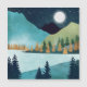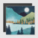 Eine wunderschöne Landschaft mit einzigartigen Texturen, die eine Berglandschaft mit aufsteigendem Mond und Sternenhimmel in den Farben Blau, Gold, Grün und Türkis zeigen.