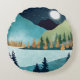 Eine wunderschöne Landschaft mit einzigartigen Texturen, die eine Berglandschaft mit aufsteigendem Mond und Sternenhimmel in den Farben Blau, Gold, Grün und Türkis zeigen.