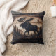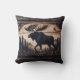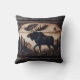 Eine detaillierte Holzschnitzerei eines Elchs, der durch einen Wald geht, umgeben von Bergen und Bäumen, zeigt künstlerisches Handwerk.