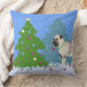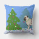 Mops, der einen Weihnachtsbaum im Wald schmückt Kissen