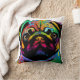 Ein heller und bunter Popkunstdruck eines Mops-Hundes auf einem weißen Hintergrund.