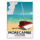 Morecambe, Lancashire British Seaside Poster eines alten Holzbootes am Sandstrand während eines angenehmen warmen Tages.