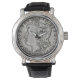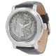 Diese Uhr zeigt die Schönheit des silbernen "Morgan Dollar"-Designs, das von 1878-1904 und wieder 1921 geprägt wurde. Der Morgan-Dollar ist eine der wichtigsten amerikanischen und einer der beliebtesten Münzen weltweit. Fangen Sie mit einer Uhr, die Vintag Americana ist!