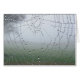 Ein Spinnennetz, das im Morgentau scheint umrissen wird fast, gesponnenes Glas zu sein. Das nebelige Feld im Hintergrund stellt durch ihr Netz dar.