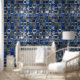 Mosiac Silver Blue Tiles Muster Peel Stick Tapete