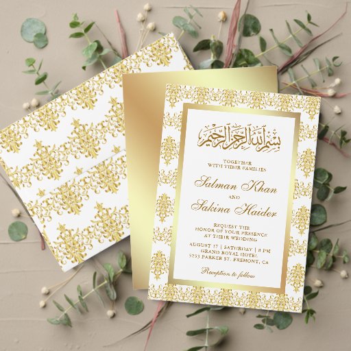 Moslemische Hochzeit in Weiß und Gold Einladung