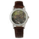 Klassische Damenuhr mit braunem Lederarmband