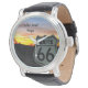 Uhr, Vintage Männeruhr mit schwarzem Lederarmband