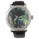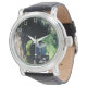 Uhr, Vintage Männeruhr mit schwarzem Lederarmband