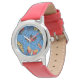 Uhr, Kinderuhr aus Edelstahl mit rosa Lederarmband