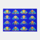 Die Türmatte in einem Gitter detailreicher, schöner Motten in dunkelblau, türkisblau, orange und goldgelb auf einem tiefblauem Kobalt-Hintergrund