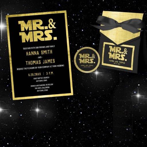 Mr. and Mrs Black Gold Sci Fi Theme Wedding Runder Aufkleber