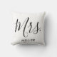 Mrs. Modern Elegant Script Monogram Wedding Throw Cushion. Ein schlichtes und elegantes Kissen, das Frau mit Ihrem verheirateten Nachnamen zeigt. Ein tolles Geschenk für ein frisch verheiratetes Paar!